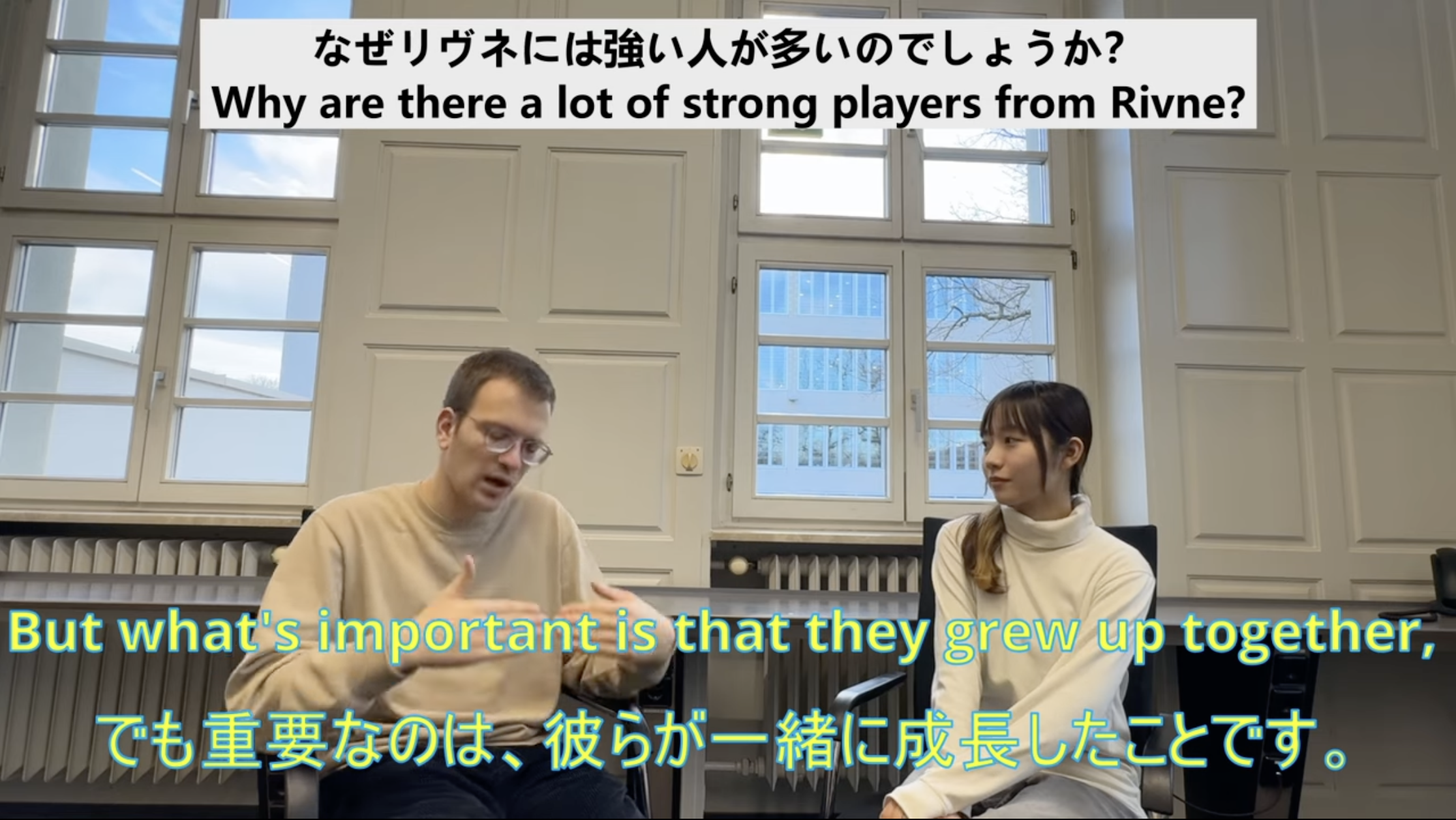 ヨーロッパ各地の大会に出場する中で多くの方と出会い、解説をお願いしたところ快く引き受けてくださいました。1局目の解説の野口基樹さんとはストラスブール大会でお会いすることができました。6回フランス王者になっておられ、1局目に登場した